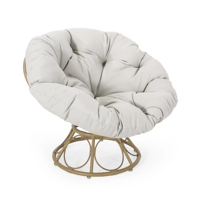 This patio chair boasts an elegant design with a distinctive bowl-shaped seat, complemented by a light beige cushion and a light brown frame. Placed in the backyard or on the patio, it can add warmth and coziness to the outdoor leisure area. Functionally, the chair excels in practicality. Its comfortable bowl-shaped design enables you to achieve ultimate relaxation whether you’re immersed in a fascinating book or simply bathing in the warm sunlight. It is equipped with a convenient swivel function, allowing you to freely adjust the angle while resting. It is of moderate weight and easy to move while its weight capacity reaches up to 250 pounds, which can meet the usage needs of different people. Moreover, the chair is very easy to maintain. You can keep it clean just by wiping it with a dry cloth. In terms of materials, the chair is made of high-quality materials. The exterior is wrapped with realistic faux rattan, which not only looks exquisite but also has good durability and can withstand outdoor environmental erosion. The cushion is covered with polyester fabric and filled with soft foam, providing a comfortable touch and ensuring that you won’t feel tired even after sitting for a long time. All in all, the swivel chair perfectly combines an elegant appearance, practical functions, high – quality materials, and convenient assembly, making it an ideal choice for those who pursue high – quality outdoor leisure life, bringing both comfort and beauty to your outdoor space.