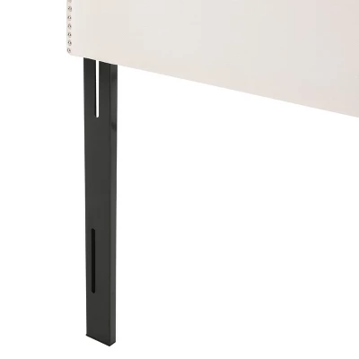 Revamp your bedroom with this eye-catching upholstered headboard, featuring a gracefully arched camel-back silhouette and nailhead stud trim that exudes classic elegance. Crafted from iron, foam, and polyester, its soft poly fabric upholstery offers a cozy touch, while the distinctive shape reminiscent of vintage playhouse billboards adds a unique charm. The height-adjustable legs (up to 5 inches) ensure a perfect fit for most Full- and Queen-sized bed frames, making it an ideal headboard to transform your space into a stylish and inviting retreat. Some assembly required, all tools and instructions included.