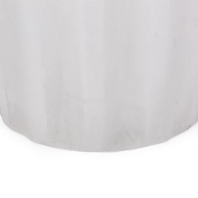 Choose a solid addition for your outdoor space to bring it to the next level. With a smooth lightweight concrete structure and modern touch, our side table offers high durability and stunning looks for your backyard or patio. Perfect as an end table next to your chat set or sectional, this piece will hold any snacks or chilled drinks in sophisticated grace. Finished with a cylindrical shape, refined wave edge, and subtle fluted design, this table is a seamless addition to any space.