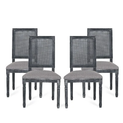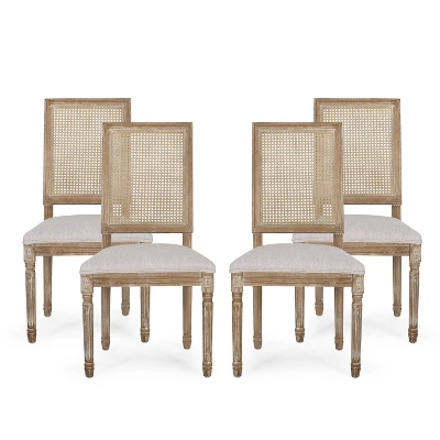 - FRENCH COUNTRY INSPIRATION: From slender fluted legs to a simple rectangular backrest made with cane, this chair set offers a French country inspiration for your home. The smooth upholstered seating of this set brings your home together with a classic touch.