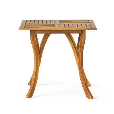 - Stylish Acacia Wood Bistro Table:The matching bistro table, made from solid acacia wood with a teak finish, complements the chair set beautifully. Featuring a smooth, minimalist design with perpendicular wooden slats on the tabletop and sleek, calming lines in the legs, this table adds a touch of coastal flair to your outdoor decor.
