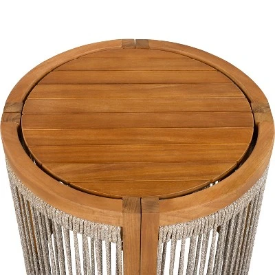 - BOHO-INSPIRED STYLE: This side table blends natural materials and artisanal charm with handwoven rope accents and acacia wood construction. Its relaxed yet refined design captures the essence of laid-back, bohemian outdoor living. Ask ChatGPT