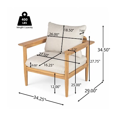 - ACACIA WOOD: Crafted from durable acacia wood, this club chair features a strong frame with a rich natural grain, offering long-lasting support and a solid, stylish foundation for your outdoor seating.