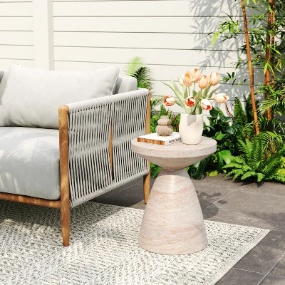 - A TOUCH OF PERSONALITY: Bring your outdoor space to life with our end table that features a beautiful hourglass pedestal structure. With charming aesthetics, this side table will be sure to enliven any home.