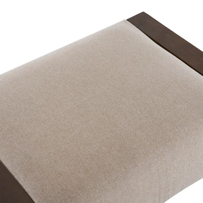 This ottoman features a charming beige color that adds warmth and sophistication to any room. Its minimalist design offers a contemporary, stylish look, making it a perfect addition to modern interiors. With clean lines and a smooth surface, it effortlessly blends with various décor styles, becoming a visually pleasing focal point.Crafted with a durable frame and supported by brown rubberwood legs, this ottoman ensures stability and strength for long-lasting use. The legs not only provide support but also enhance the overall design. The well-padded top offers a comfortable place to rest your feet or sit. Carefully selected cushioning provides the right balance of softness and support, ideal for relaxation. Versatile in function, it serves as a footrest, extra seating, or a compact addition to small spaces. Whether in a living room or bedroom, it enhances both style and comfort.