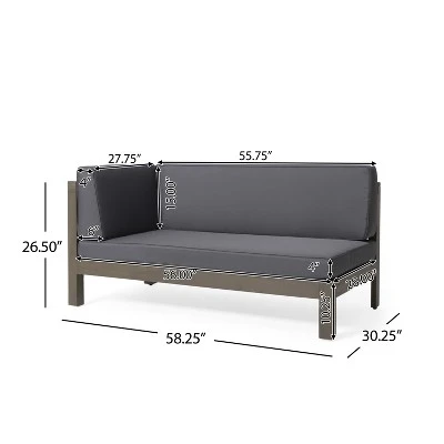 Left Arm Loveseat Dimensions: 30.25 inches deep x 58.25 inches wide x 26.50 inches high