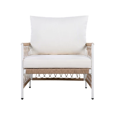This outdoor lounge chair combines boho-chic charm with lasting performance, making it a standout piece for patios, gardens, or poolside. The durable powder-coated frame and reinforced joints ensure strong, long-term use, while handwoven rope detailing adds breathable comfort and visual texture. Its earthy tones and open-weave design evoke a relaxed, natural aesthetic. Engineered for all-weather resilience, the UV-resistant rope and waterproof cushions resist fading, mildew, and moisture. Whether you’re lounging in the sun or hosting guests, this chair delivers comfort, elegance, and durability for stylish outdoor living in every season.