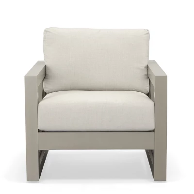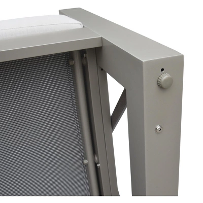 Upgrade your outdoor space with this contemporary lounge chair, designed for both style and durability. Featuring a sleek powder-coated aluminum frame in a sophisticated gray metallic finish, this chair is built to resist rust and stand up to the elements. The beveled end panels frame a modern geometric design, adding a touch of elegance to any patio or deck. Oversized, plush seat and back cushions provide exceptional comfort and support, while open-cell foam technology ensures faster drying and superior weather resistance. The cushion covers, made from a blend of solution-dyed acrylic and polyester fibers, offer outstanding fade and color resistance, keeping your furniture looking vibrant season after season. Plus, adjustable nylon glides allow you to level the chair on uneven surfaces for added stability. Whether you’re lounging in the sun or entertaining guests, this stylish and durable chair is the perfect addition to your outdoor living space.