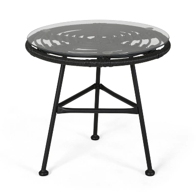 Gift your outdoor seating with a companion that brings style and function to your outdoor décor. Featuring a delightful hand-wrapped look, our side table offers a durable structure and uniquely modern style. Consisting of a steel frame and rattan material, this charming piece is made to last with its weather-resistant construction and durable structure. Whether you are serving up a glass of lemonade or a tray of snacks, our end table will have no problem keeping your patio in style all summer long.