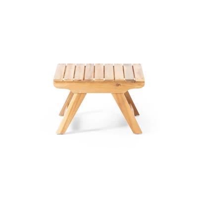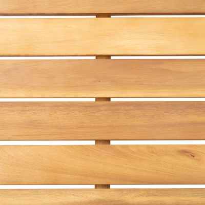 Set a crisp glass of lemonade by your outdoor sofa with the help of our beautiful side table. A perfect companion to your backyard furniture, this table offers a lovely acacia wood structure and great durability to your space. Crafted with clean lines and a simple structure, our end table offers an open slat design that will upgrade your backyard or patio space with a touch of class. Seamlessly blending into any arrangement, this table is the perfect addition to any outside décor.