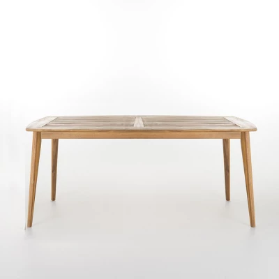 Elevate your outdoor dining experience with this 71″ acacia wood table, finished in rich teak for a warm, natural look. Its smooth lines and subtly curved frame offer elegance and visual softness, while the weather-resistant build ensures long-lasting durability. Perfect for patios, decks, or gardens, this versatile table serves beautifully as a dining or serving surface for up to six guests. Designed to blend style with strength, it pairs effortlessly with various outdoor chairs. Some assembly required, with all tools and instructions included for a quick setup.