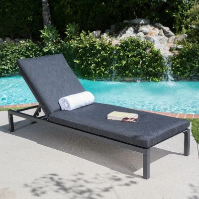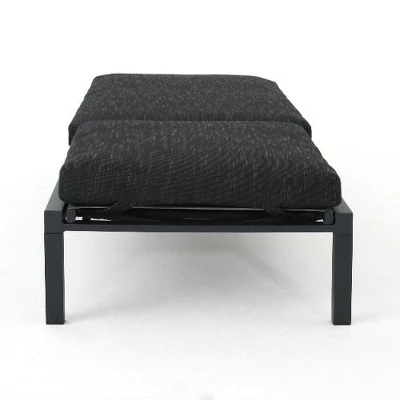Elevate your outdoor space with this sleek 2-piece aluminum chaise lounge set, designed for modern style and year-round durability. Each lounge features a weather-resistant dark gray aluminum frame, fully flat reclining position for ultimate relaxation, and includes 100% polyester water-resistant cushions with foam filling. Perfect for patios, poolside, or backyards, the foldable and stackable design ensures easy storage when not in use. With a 250 lbs weight capacity per chair, this set combines contemporary aesthetics with functional comfort, inviting you to unwind in the sun or enjoy a quiet afternoon with a book.