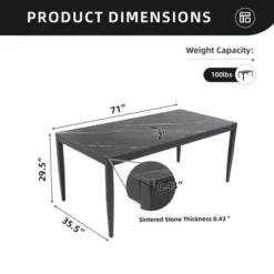 Christopher Knight Home Southey 71″ Aluminum Rectangle Dining Table With Stone Top And Umbrella Hole